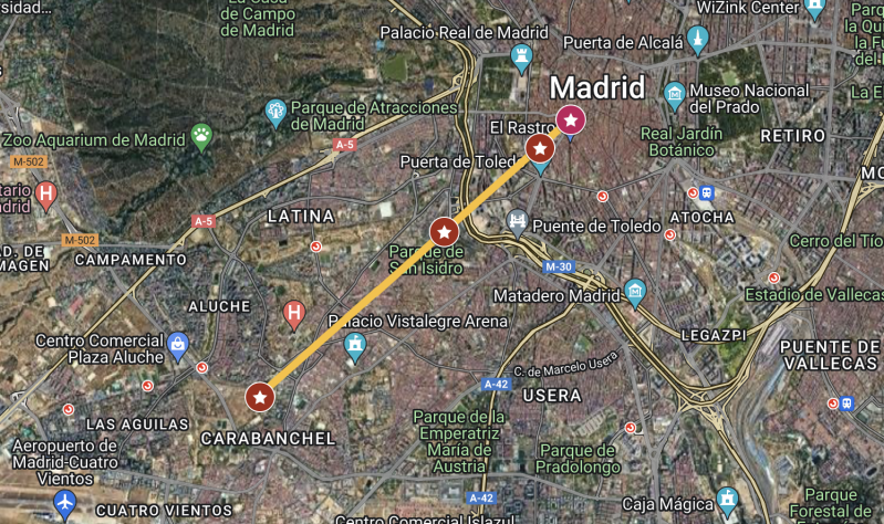 It is an ideal straight line that crosses old Madrid, perfectly aligning four essential sites connected to Saint Isidore the Labourer.